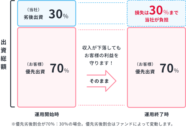 • 失敗したくない人: 運営側が25%の損失まで身代わりしてくれる(劣後出資)。